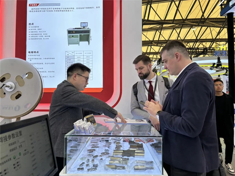 本次展會我司深發源共攜帶了四臺線束&端子焊接機設備亮相慕尼黑電子生產設備展,分別是小平方線束焊接機、大平方線束焊接機、小平方自動上料端子焊接機、大平方端子焊接機。其中大平方線束焊接機和大平方端子焊接機是第一次在展會中展出,一亮相就吸引了眾多海內外觀展商駐足停留以及拍照咨詢;甚至同行都按捺不住要來我司展位前交流了解,尋求設備詳細資料。